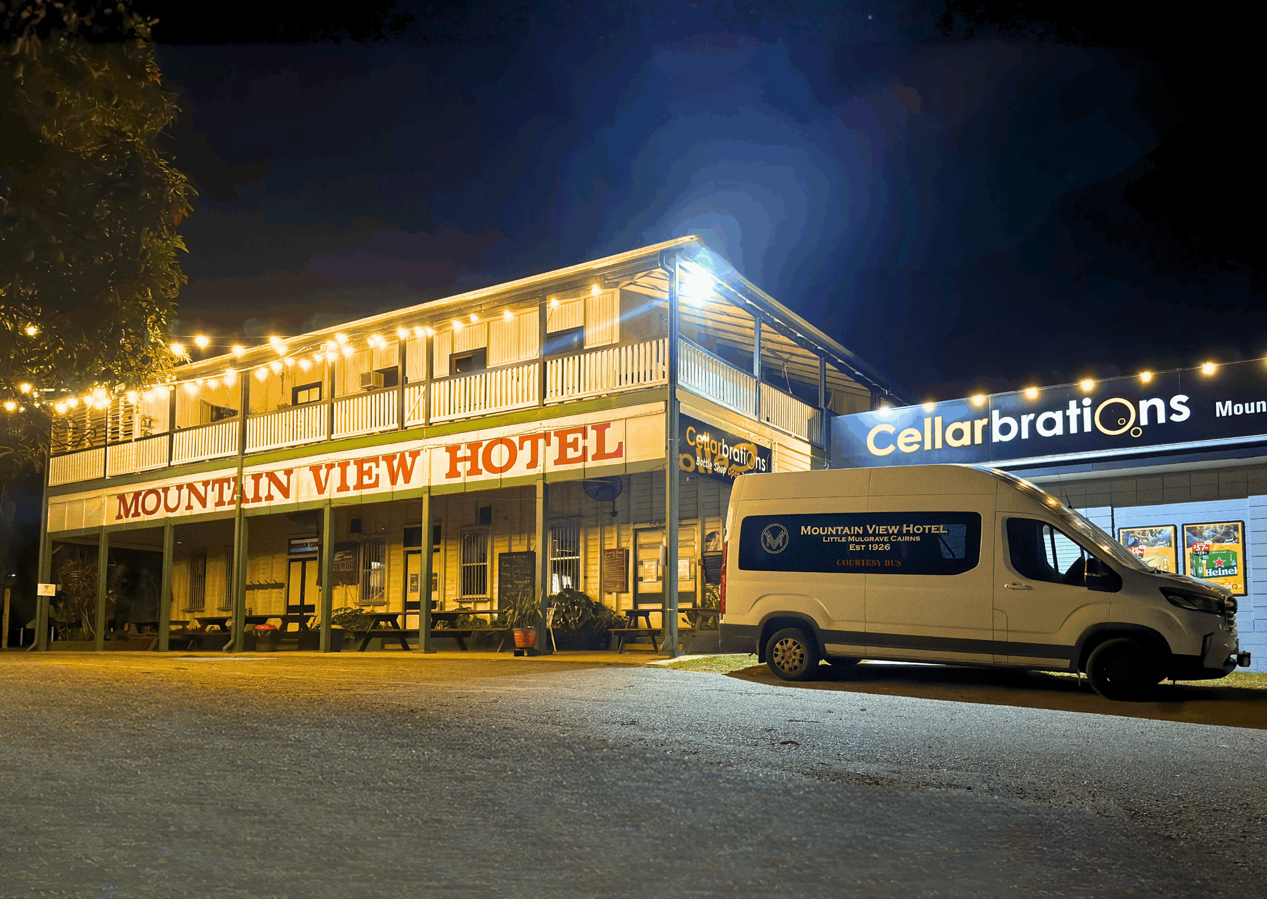 At the Mountain View Hotel, there’s always something exciting happening to enhance your dining and entertainment experience. Join us on Tuesday for Trivia Tuesday and test your knowledge against family and friends its always a great night out, Wednesday for Off The Grill Night mouthwatering Steaks & Reef Fish that are sure to satisfy your cravings. Thursday is Schnitty Night, where you can savour delicious homemade schnitzels cooked to perfection. Fridays come alive with the rhythm of live music, Mega Meat Trays and Jag the Joker, setting the perfect mood for the weekend ahead. Saturday nights are getting more and more popular with Bigger Bands and DJ’s bringing great vibes. And for a relaxing Sunday, head to our Riverdeck Stage Sunday Sessions with live music, where you can unwind by the water, enjoying great tunes and a stunning view of the Little Mulgrave River and surrounding Rainforest setting a perfect ambience to relax. Come join us for food, entertainment, and memorable moments. See You @ The Mountain View Hotel.